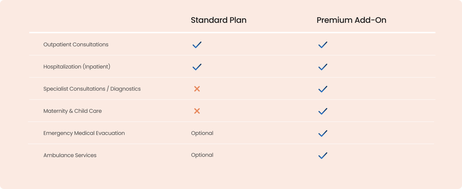 Our medical plans include outpatient, inpatient, and optional add-ons like maternity or dental. With flexible choices, you can tailor coverage for individuals, families, or company employees.